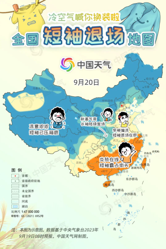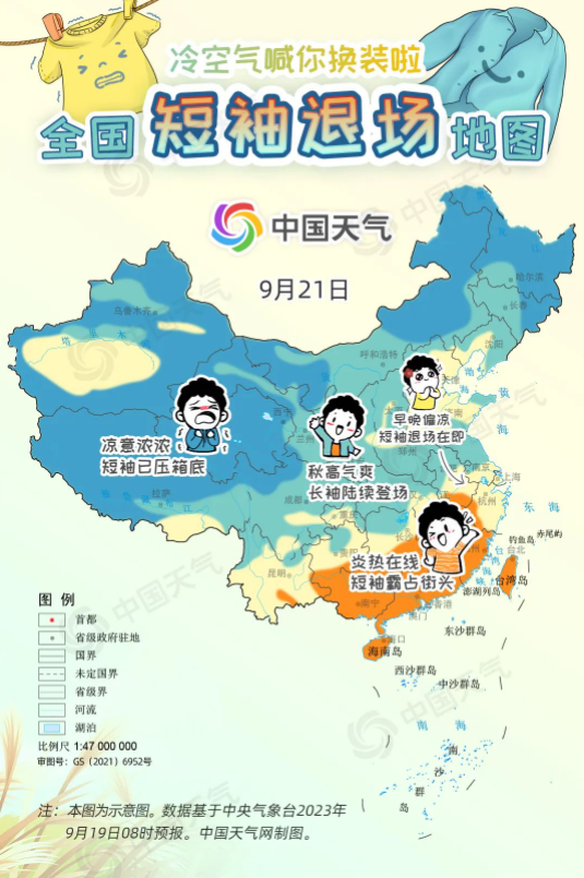 进入9月中旬,冷空气变“劳模”频繁来袭,西北、东北大部都已迈入秋天门槛,但华北一带今年秋天似乎来得有点儿晚,南方地区白天甚至热到还要开空调,不少网友喊话:“秋高气爽何时能来?”9月19日至21日,受冷空气和降雨共同影响,长江以北大部地区将陆续迎来降温,开启秋日初体验。中国天气网特别推出全国短袖退场地图,看看哪里可以安排秋天的第一件长袖。