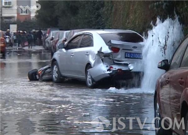 12月30号下午四点左右,南京江东派出所接到市民报警,称龙江小学西门旁的消防栓被一辆快速倒车的私家车撞断了,现在小学门前成了汪洋一片,而肇事司机却不见了踪影。接警之后,派出所民警立即赶赴了现场。