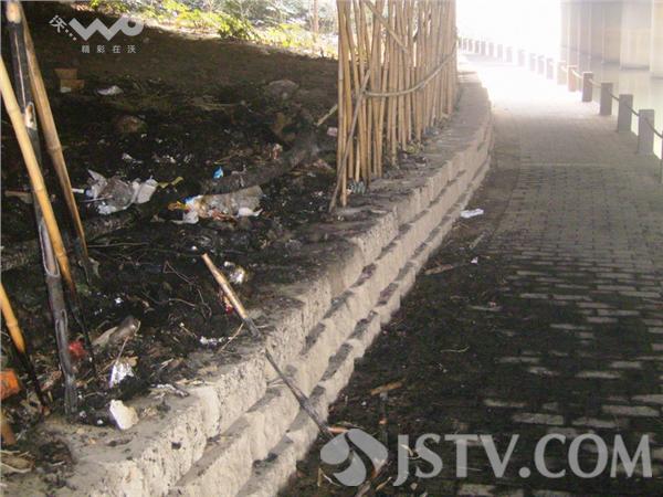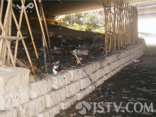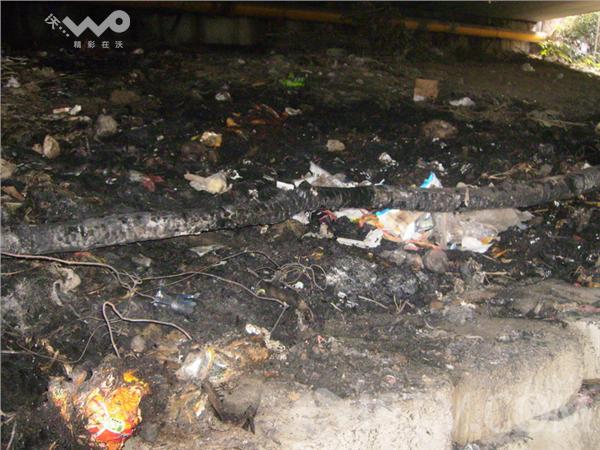 据早晨在此遛狗的大爷大妈说,这些被焚烧的不光是生活垃圾,还有一些破旧的被褥、衣物等,以前一些流浪汉经常在桥下“暂住”,留下一些破旧的衣物等生活用品,加上产生的一些生活垃圾被一起集中堆放在桥下,两天前不知被谁突然烧掉了,也不知道是流浪汉不慎点火烧毁的,还是有人故意烧毁的,据他们判断,被人故意烧毁的可能性较大,因这些杂物加上垃圾长期堆放在这里,一直不见阳光,都已经发霉变味了,估计因为怪味较大被人烧毁了,连外围的一段竹篱笆也被连带烧毁了,留下一块黑色的缺口,十分难看。