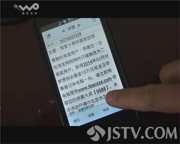 记者在宋先生的手机上看到,这条短信是号码为18710337229的手机发过来的,短信的大意内容是这样的,说宋先生在淘宝网上购物时被抽取为二等奖用户,获得2014年2月份的梦想创业基金10万元和苹果笔记本电脑一台,本次活动已经通过北京市互联网公证处公证审批。记者随即与宋先生通过网上查询,发现该部手机的号码归属地为陕西省的西安市,再根据短信上提供的淘宝网网址进行登陆时,网页上随即跳出360安全中心的对话框,提醒记者这是一个假冒的淘宝网中奖网站,回拨发短信的手机,也被告知该手机已因欠费停机。