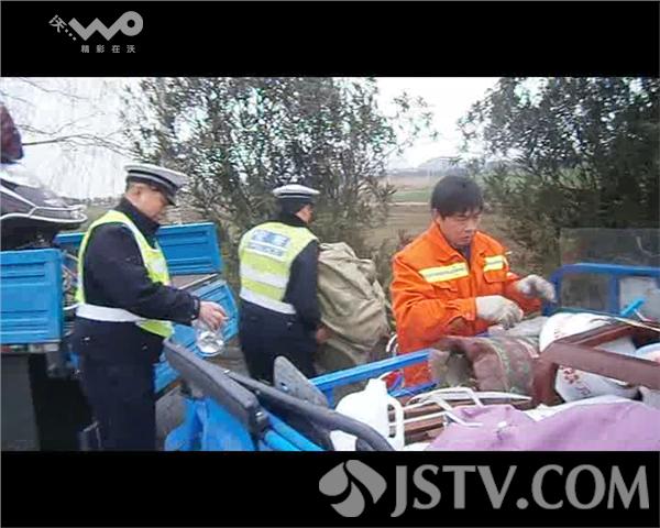 28日中午时分,在原淮江公路高邮北郊卡口处,一位淮安的中年男子颓废地推着满载货物的电动车向高邮公安局防控处警大队民警求助,称其本想省点路费回家,谁知骑行途中,买的旧车抛了锚,身上无分文,在路上走了4天4夜。