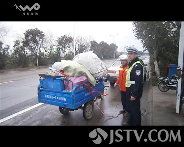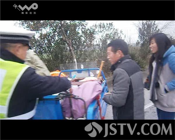 据了解,该男子姓张,今年40多岁,淮安涟水县人,在镇江做环卫工,有好几年没回家了,今年打算回家,因自己有很多生活用品及行李,考虑到坐车不方便,就在镇江花了800元购买了一辆旧电动三轮车,本来希望一路能顺顺当当回家,可是行驶途中电瓶问题频出,走不了多远就要充电,无奈下只好求助民警。巡逻民警了解相关情况后,先将其扶到岗亭内休息,随后带其吃午饭。饭后,民警就上路与拦了一辆开往淮安的货车,让张张师傅搭个顺便车。