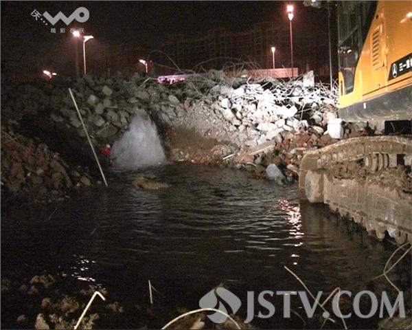 工人说,接到居民反映,工地派他们来找水管破裂的地方,无奈水流太大,根本无法找到。于是他们联系了自来水公司的维修人员。直到晚上七点多,维修人员赶到现场,找到总阀,流了两个多小时的自来水才被关上。