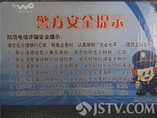 徐州市泉山区公安分 局夹河派出所民警 褚 盈:“我希望大家谨记,我们公安机关的“110”他只是一个日常的接处警的平台,处理的就是我们公安机关管辖范围内的各类矛盾纠纷,还有各种样的案件,他是不具备办案工能的,而且110更不可能和我们这个法院或检查院,有一些所谓的一些业务来往,更不可能说帮你转接到检查院或者法院。所以说大家还是要牢记,我们这个110大家打入的时候显示是“110”,但是当110呼出的时候,显示的只是一个固定的电话号码,绝对不可能是“110”,更不可能前面加区号。所以说希望广大市民朋友牢记,凡事我们接到区号加“110”的,就是这种电话号码,他又让你涉及到所谓的安全帐户,让你往里面打钱汇款,这种就肯定是诈骗的行为。”