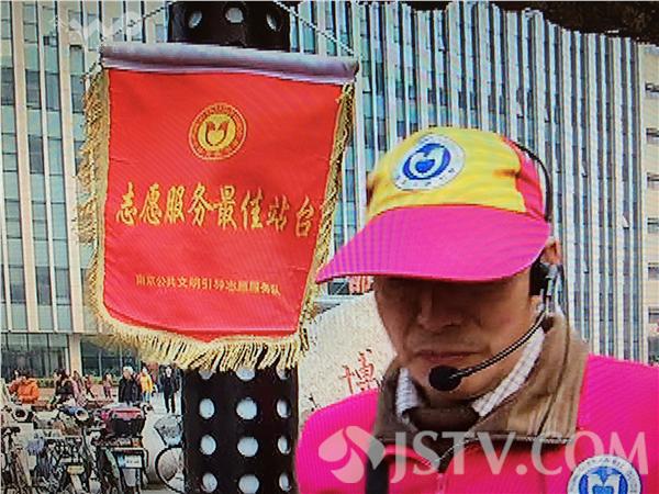 红帽子,红背心,手上还拿着小红旗。郭师傅热情的声音和亲切的笑容,让早春的西安门公交站台显得其乐融融。而这个站台也被南京公共文明引导志愿服务队,评为“志愿服务最佳站台”。郭师傅在这里做志愿者已有一年多了,他说自己很快乐。