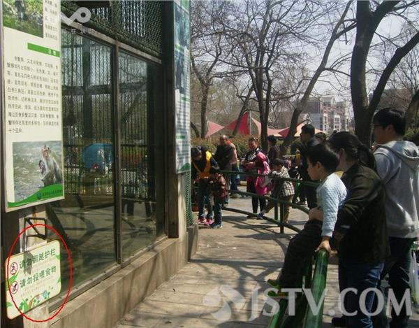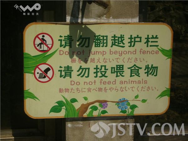 可就在游客旁边,围栏上赫然悬挂着“请勿翻越护栏, 请勿投喂食物”的警示,众多游客却仍视而不见,陶然忘乎所以。