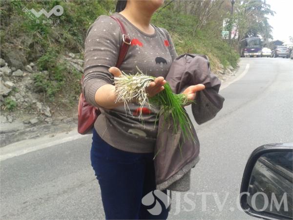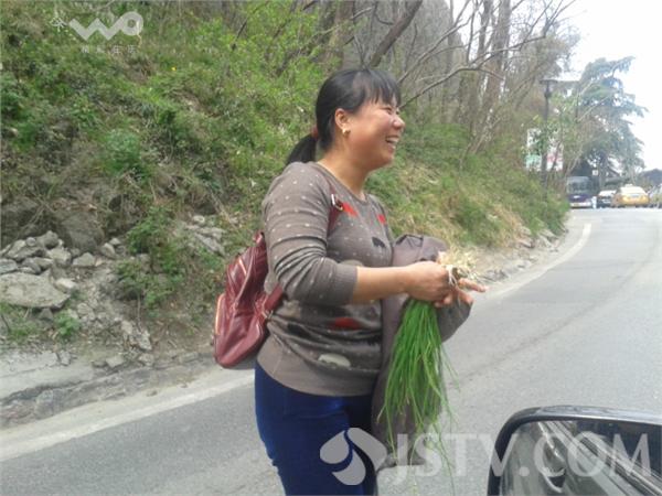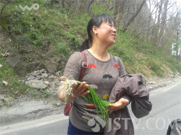 今天上午,一位南京市民在南京中山陵龙脖子段,采摘了一大把野蒜,对记者说,这个回家炒鸡蛋,特别香。
