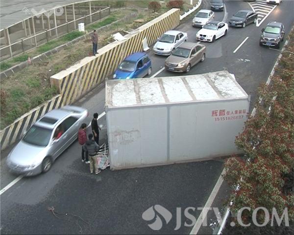 昨天傍晚5点多,南京绕城公路三桥方向 双龙街入口处,一个集装箱从货车上掉下,对于这一事故,肇事司机竟然解释说,是因为风太大,所以好几百斤集装箱才被刮掉下来的。