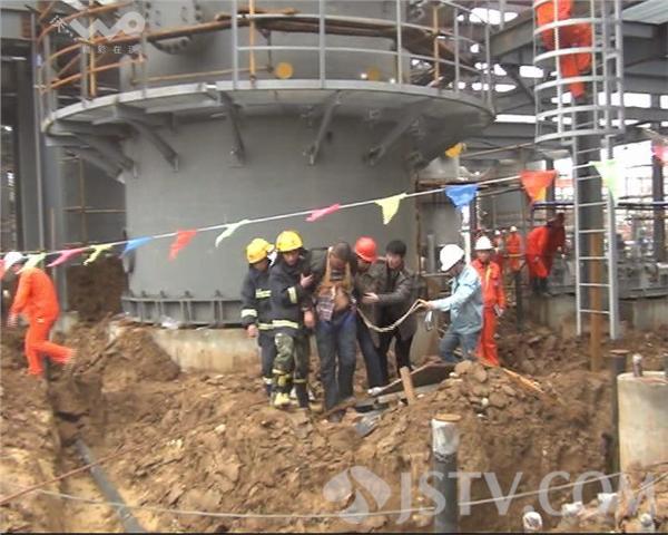 现场可以看见,工地上矗立着几座正在建设的高塔,一名男子躺坐在30米高的高塔护栏上面,情势危急,消防部门接警后迅速赶往现场救援。由于地型复杂,不好铺设救援气垫。两名身着橙色衣服的工友携带救援工具,爬上塔顶,站在防护栏边上劝说他,做他思想工作。据了解,这名男子是工地工人,因向老板讨要工钱,喝了一瓶白酒壮胆,乘人不备,歪歪斜斜地爬上了30米高的高塔。周围工人发现这一情况后,立即打电话报警。