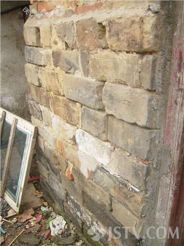 现场查看,在相邻两堵墙体上都有明城砖,一侧城砖完全外露,另一侧墙面上则被人涂上了白石灰,尽管如此,在墙体下方还是露出了明城砖的真容。整排民房看上去比较老旧,唯独这相邻的两堵墙上有明城砖。