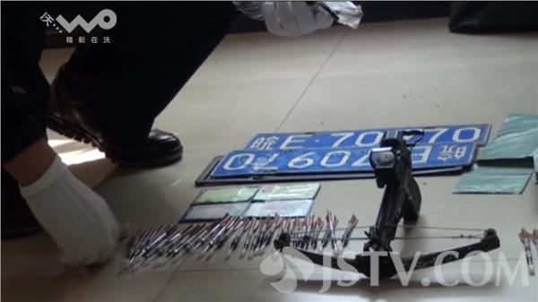 根据道路监控显示,这辆车牌尾号为628的黑色桑塔纳一路从南京溧水的永阳驶向城区,沿着省道朝白马方向逃窜。得知这一情况后,民警立即驱车追赶,一直追到晶桥附近的一条山间小路,才将车辆逼停。当场擒获两名嫌疑人,查获2条土狗、一支弩枪、69支毒针以及塑料袋若干。