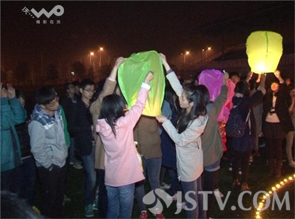 现场看到虽然祈祷过后,仍然有很多大学生不愿离去,默默的守在蜡烛旁边喊出马航回家口号,最后部分大学生放飞了写有祝福马航话语的孔明灯祈福马航同胞。