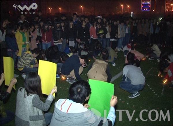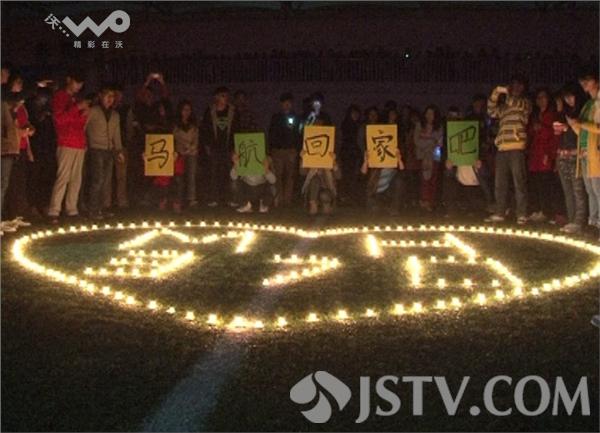 3月29日晚9:20分,南林大淮安校区1000余名大学生在校园广场上为马航MH370同胞烛光祈福,希望他们可以一切平安。大学生们将事先买好的蜡烛分别摆好,不久一个大大的“心”展现在大家面前。中间摆出了MH370,随后,由五名大学生手举马航回家吧字样。