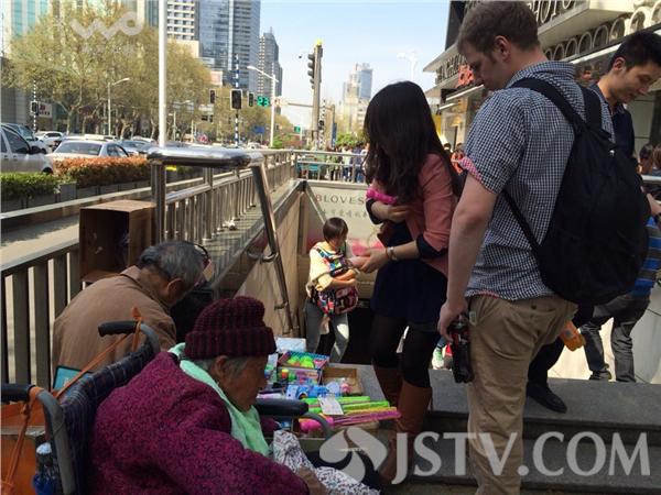 还在老远处,记者就看到老人的摊子周围,围满了购买玩具的人。这其中有许多是因为看了微博微信特地前来购买的。大家的热情,让82岁的邵师傅非常开心。他告诉记者,因为咳嗽,这一周没有出摊,他也完全不知道自己在网上火了。之所以出来做点小生意,是想自食其力,自己和老伴都是安徽农村的,每个月的低保加起来只有140块钱,而老伴每个月的药费就有一百多块。老人有四个儿子一个女儿,虽然都在南京,但条件也都不宽裕。一来老人不想给儿女添麻烦,二来患脑梗的老伴成天喊着要出来转转,于是邵师傅从夫子庙批发了一点小玩具,来玄武湖地铁站摆摊,贴补老伴每月一百多块的医药费。平时一天也就卖几十块钱,而今天一个早晨已经卖了二百块了。邵师傅是个爽快人,买东西的人要是没有零钱,他就少收一点。