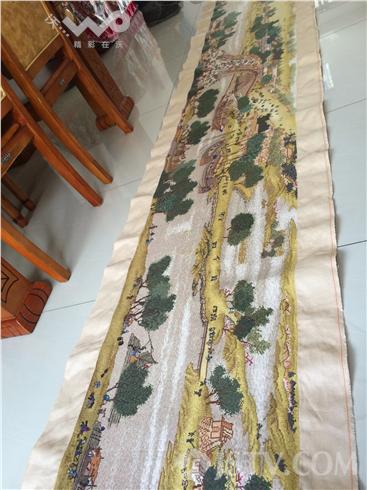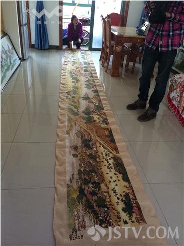 老人名叫朱养吾,虽然是78岁的年纪,但身体健朗,眼睛也不花。在她家客厅,我们看到了很多十字绣作品。老人最得意的,还是这幅耗时两年半,长六米多的《清明上河图》。老人说,绣这幅画需要70多种颜色的线来回更换,费时费心,但只要想到孙子,她就充满动力。