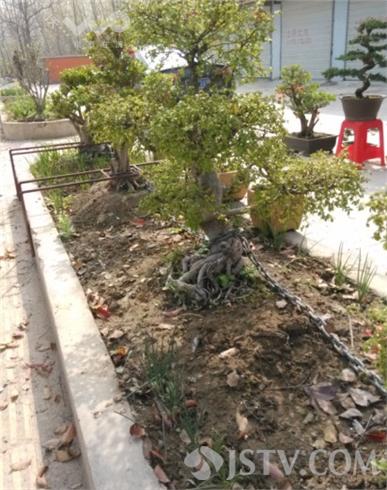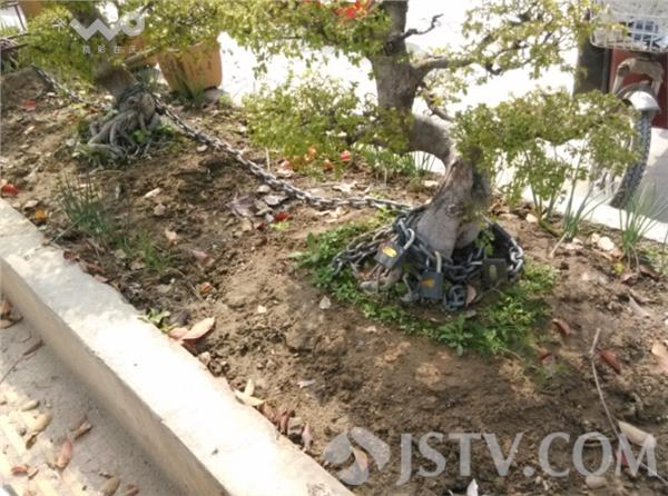 那么究竟是何人下这番功夫保护盆景呢?附近居民表示,这些都是庭院生的植物,主人才将它们种在外面,因为价格不菲怕被偷才用铁链把它们锁起来。