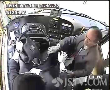 B12监控录像上拍到的视频显示,当天下午1点45分30秒驾驶员关上了车门,接着挂上档,挪动方向盘准备驶离站台。1点46分13秒,一名男子来到了驾驶员附近后开始抢夺方向盘,没多久车就撞到了绿化带上。新海公交派出所 副所长 韦纳方:“嫌疑人抢夺方向盘导致车辆失控,当时车上有两个人受伤,一个是小孩还有一个老太太。”