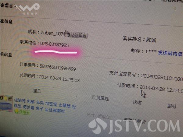 为了弄清号码到底是怎么留的,3月28号,编辑们也在这家店里买了一只鸟笼。结果到现在也没有发货信息。在以买家身份与卖家尝试联系的过程中,编辑们发现,在这家店铺的页面上,充斥着大量消费者斥责店方不诚信的投诉。而这家店配备的四个网上客服,平时几乎从不见踪影。网络台的编辑们守了好几天,才终于在网上联系到了对方。告知对方自己就是他们所留的025电话的所在单位后,这家店的客服一直装傻充愣,说自己不明白网络台的编辑们在说什么。在店家的网页上,还留有另外几个联系方式,记者一一拨打后发现,这些号码大多无法打通。只有一个河北邯郸的号码接了电话,对方表示,自己也是受害者。说从去年十月起,好多人给他打电话询问为何不发货。他通过阿里旺旺跟他们联系,让他们把联系电话改了,但是店家一直没有做过更改。