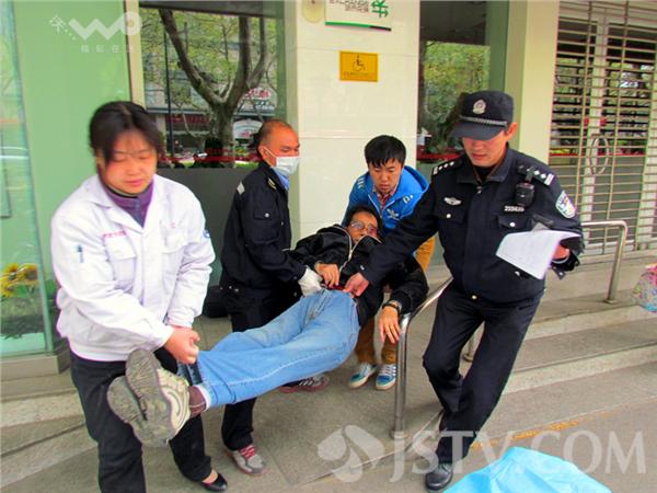 当日上午,小刘和妻子推着儿童车,路过中山北路一家银行取钱,妻子推着童车慢慢行走,小刘突然,发现一老爷子走在银行门口残疾车通道处,一手扶着不锈钢栏杆,瞬间,老爷子翻了跟头,小刘二话没说,立即将老爷子扶起,随即并吩咐妻子报警。不久,医护人员赶到现场,小刘和医护人员、民警将老人抬上担架,送上救护车。这时,施救的男子才悄无声息地离开了。徐福庚 摄