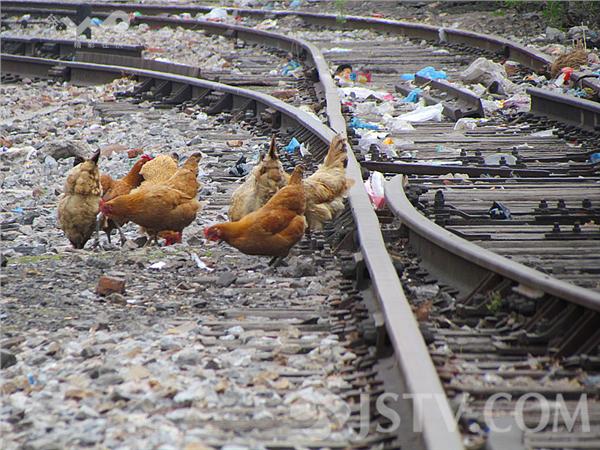 位于南京浦口区南京“百年老火车站”垃圾遍地,家禽成群,现状令人堪忧。“每天有近百只鸡,在铁路上“散步”寻食,散养鸡粪遍地令居民忧心忡忡。
