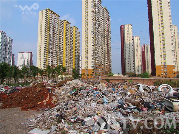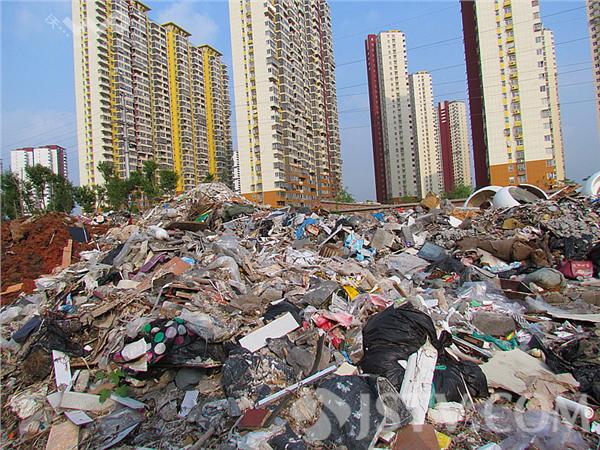 笔者来到现场,看到莲花新城南苑7幢小区道路北侧,一个数百个平方米的垃圾场,堆放了很多建筑垃圾和生活垃圾,已经堆成了一座小山,十分壮观。甚至不断残食树林向绕城公路边漫延,蚊虫在垃圾堆上飞来飞去。站在这个垃圾堆向东望去,背景是一幢幢高楼大厦,显得格格不入。据附近居民介绍,垃圾已经堆放好久,因垃圾散发的臭味在几米之外都可闻到,现在他们平日都不敢开窗户了。“苍蝇、蚊子特别多,一开窗就有阵阵恶臭。”家住南苑的陈女士说。