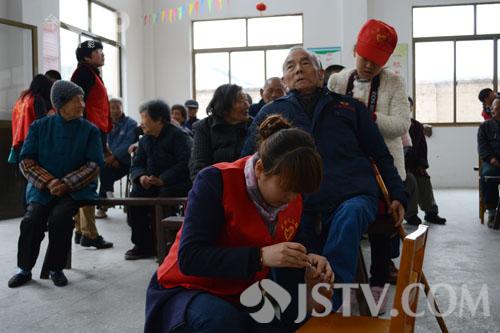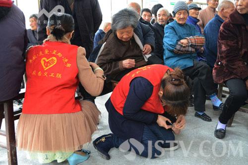 4月13日上午,东台市义工联合会组织五十多名爱心义工,来到东台市富安敬老院,为住在这里的几十名老人奉献爱心,帮助老人查身体、剪指甲、理头发、洗碗筷,并表演了精心编排的文艺节目,与老人们共同欢度了一个愉快的星期天。活动中,一名叫吴小妹的义工膝盖跪地,为腿脚不方便的老人修剪脚指甲,被众人亲切地誉为“最美义工”。