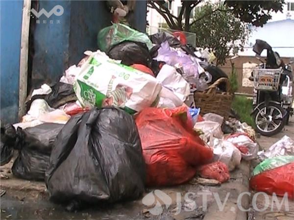 现场看到许多楼房前的垃圾房都是满满的,由于垃圾桶都被填满了,地上也堆满了不少生活垃圾,垃圾房到处都是苍蝇飞舞,垃圾中还有许多蛆虫在蠕动,由于垃圾中的腐败气味十分刺鼻,许多居民家中的阳台窗户都是不敢开。