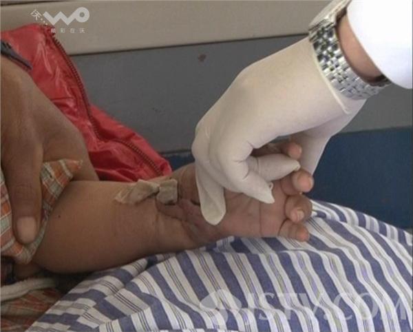 在淮安市涟水县保滩镇8岁女孩小兰,从今年春节后,左手腕开始红肿,她的父亲在其红肿的手腕处扣出一根橡皮筋,但红肿症状并没消失,在许多医院治疗后也不见好转,还出现败血症症状。4月14日下午,就在即将为小兰做截肢手术前,医生临时改变手术方案,切开她的左手腕红肿部位,在接近骨头的深筋膜附近竟然又发现了两根橡皮筋。切开小兰左手腕红肿部位后,医护人员剪断皮筋将其取出,排脓。从目前来看,手术不会影响小兰以后的左手功能。