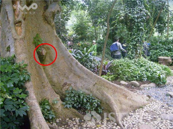 令人意外的,在植物园热带植物展区,在一棵高山榕的树干断口处,竟有老外也在此一显身手了。