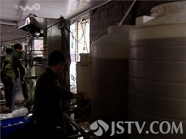 记者在现场发现很多在市场上收购来旧的酱油醋瓶子,通过很赃的污水清洗完以后,就直接灌装完以后塑封成箱。作坊现场污水横流,散发着恶臭味,棚内苍蝇满天飞。已经灌装好的标有烟雨楼商标的料酒成堆的扔在地上。