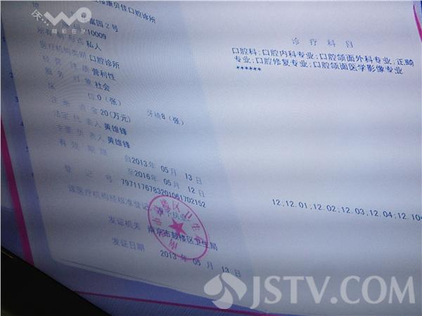 作为老年人掉牙之后的一个辅助技术,种植牙市场如今非常火爆,但价格也不菲,种植一颗牙往往要上万块钱左右。在巨大利益诱惑下,一些没有资质的医疗机构也开始上马,有市民举报,南京康贝佳口腔诊所没有资质却在做种植牙。那么,事实果真如此吗?