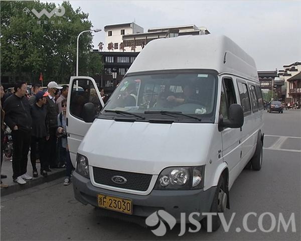 昨天下午4点多在夫子庙,一辆牌号为浙F23030的面包车被检查人员扣下,这辆车身上印有无锡三国城、水浒城以及上海等旅游路线,俨然就是个旅游包车,但检查人员发现车辆行驶证上显示的却是“非营运车辆”。当时导游已经把9名游客带到了景区,车上还留有游客的行李。