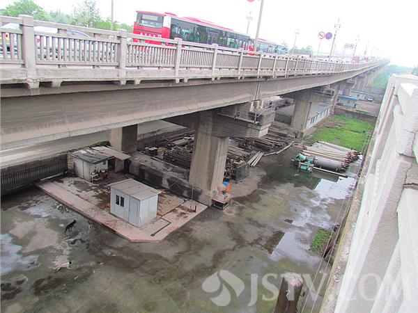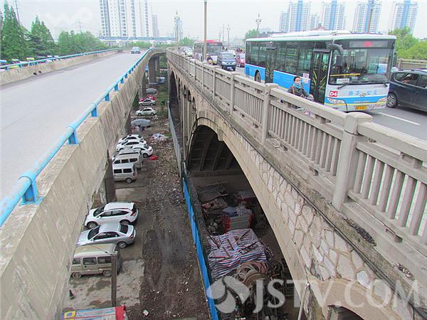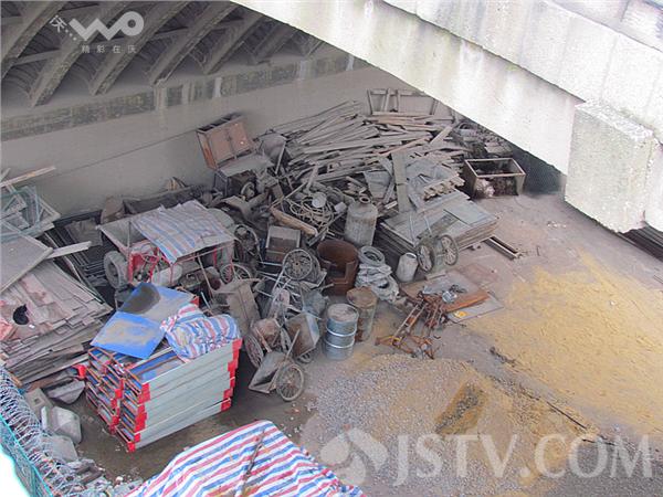 站在桥面上,低头往下观看,桥孔内近千方米被用作仓库堆放着杂物,落满厚厚一层灰。仓库里存放着各种各样的材料、机械,等货物。地面上积着一摊污水,已经长着青苔、垃圾。目睹这些,一位游客严先生忧心忡忡:南京长江大桥下几个桥孔内,违建不说,露天堆放物品、杂物,甚至还有一辆垃圾车。记者在现场看到,桥下违建房成片,环境脏乱并差,与著名的南京长江大桥格格不入,有碍观瞻,严重影响了城市的形象。希望在“大干一百天,环境大扫除”环境专项整治活动彻底清除这里被遗忘的角落。徐福庚 摄
