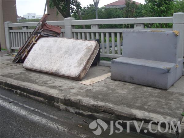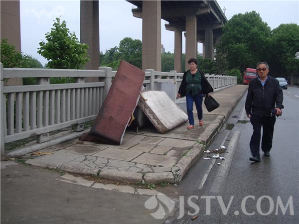 今日早晨,鼓楼区回龙桥上散步居民投诉,附近有些人家打扫除后,把大量旧家具拖在回龙桥上并扔人行通道上,弄脏弄乱了环境不说,还有阻碍行人走路,有碍观瞻,希望有关部门进行清理。