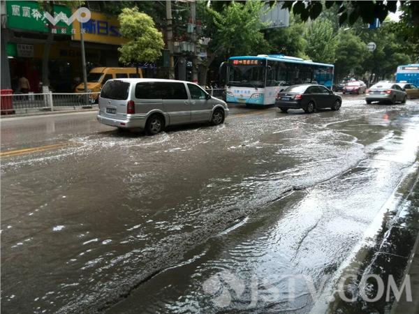 而后记者联系到了南京市政综合养护管理处的工程师到现场查看后,发现是中华路雨污分流污水主干管在进行顶管施工后,出现了路面沉降,导致大雨过后积水难以消除!随后管道施工方组织人力同环卫一起打开窨井盖清扫积水,然而积水并没有减少的迹象,经过仔细查找,我们发现在马路中间有一出水点正往外冒水。施工方表示,这有可能是自来水管道经大型车长期碾压,导致管道有裂缝而造成的。他们表示将联系有关部门尽快解决道路积水的问题。