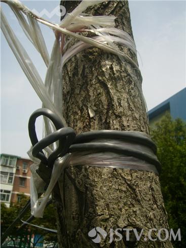 笔者现场发现,除了在公园里的树木上晾晒各种衣物之外,在靠近公园西门一侧,确有人晾晒了被子毯子,因为承重较大,拴在小树上的绳子都把树干拉弯了。据了解,这些被子都是附近居民抱过来晾晒的。公园是市民活动的公共场所,如此公开晾晒衣被,既不雅观,也有碍树木正常生长。