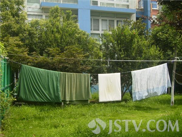 位于南京秦淮区瑞金路附近的瑞阳公园是闹市中一处难得的绿茵公园,常年实行免费开放。因公园里树木众多,绿化覆盖率高,每天能吸引附近很多的市民前来跑步、打球、下棋等,好不热闹。可是最近有市民称,公园里每天都有人在此晾晒衣服、被子,尤其在小树上拴绳晒被子,一晒都好几床。