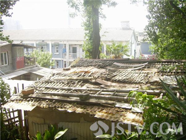 记者近日在南京明城墙上游玩时,发现在一处紧连明城墙墙体的地方竟有成片违建,这些违建大多是简易搭建,上面覆盖有石棉瓦、木板等,倚墙而建,从城墙脚下一直到屋顶与城墙上地面“平起平坐”。虽然隐身在城墙上的一片树林后面,但是只要走进了就能一眼发现。