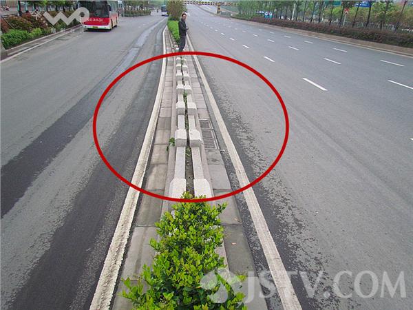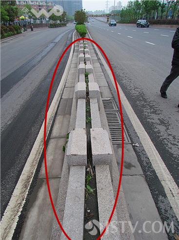 南京城北幕府西路是一条快速通道,道路南侧绿化带上出现一段最窄的绿岛,绿岛路牙与路牙背对背,中间宽度仅约几厘米。据了解,幕府西路是去年进行快速化改造,提升通车人力,可是由于设计上的不细心、还在周围做了不伦不类几厘米绿化带,附近居民讲:政府花巨资改造幕府西路,一段十几米的绿岛都设计不好。徐福庚 摄