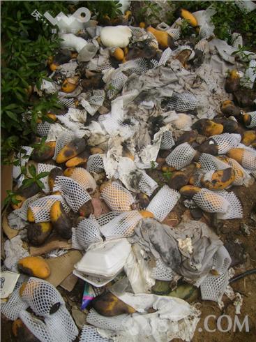 有市民爆料,在南京城墙脚下、标营门边上的一处角落,有人在此偷倒水果等垃圾。根据指引,记者在城门拐角处发现了这一堆偷倒的垃圾,变质腐烂的芒果、西瓜皮、快餐盒以及水果包装袋等被集中“倾倒”到了这里,从城墙下往下看特别扎眼。