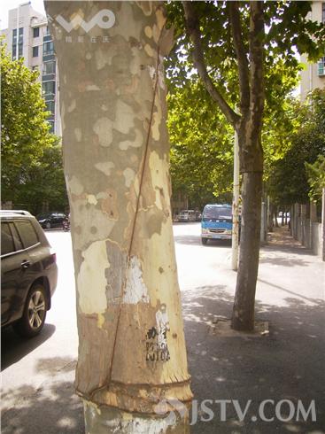 法桐是南京种植最广、也最有标志性的行道树,散布南京各处大街小巷的一棵棵法桐还是我们城市的绿色卫士和美丽风景。如今由于“历史遗留”,还有不少这样的法桐正在遭受缠绕“勒索”,呼吁园林等部门能采取必要措施帮帮这些路边的法桐,给她们松松绑,以便她们更健康地生长。