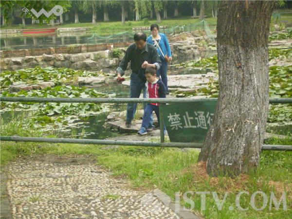 上午在南京白马公园游玩时,发现一处围栏内水域禁行地段仍挡不住一些游客擅入,动作灵活的姑娘小伙嬉笑着爬进围栏后很快就“穿越”而过,而携家带口的游客就显得“稳当”多了,并走边拍照,一副从容不迫的样子。