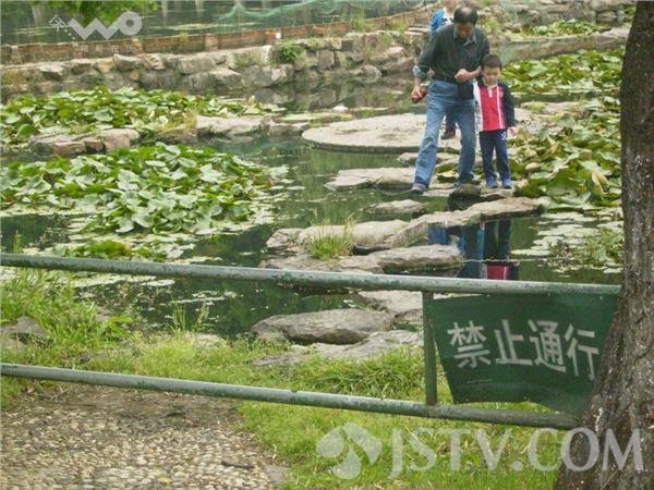 据了解,被围栏拦住的水域地段原本是一条踏石而过的水路,前些年由于有游客在水路石头上跌伤过,园方出于安全考虑,后来干脆封闭了。现在每逢周末或节假日游客集中的时候,仍不时有游客爬越围栏,“重走老路”,由于水路上现仍有不少石块不稳,游客通行时很容易再次跌倒受伤。园方呼吁游客不要擅入围栏水域,游园时需注意自身安全。