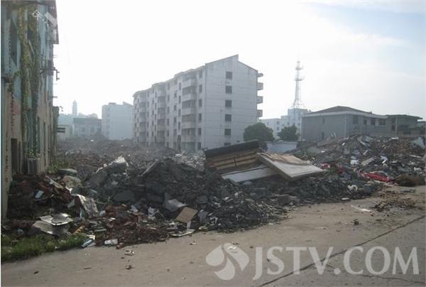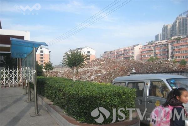 日前,镇江网友反映,在塔山西路孔家巷小学周围堆满了小山似的建筑垃圾,学校大门对面还有几幢破烂不堪的待拆小楼,路上尽是砖头弃物,每当风起灰尘四扬。