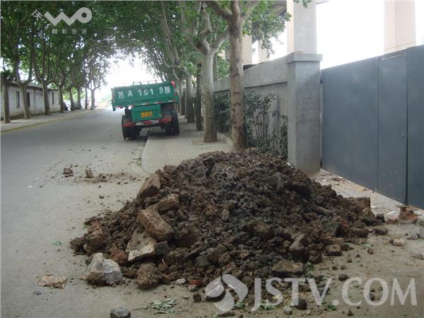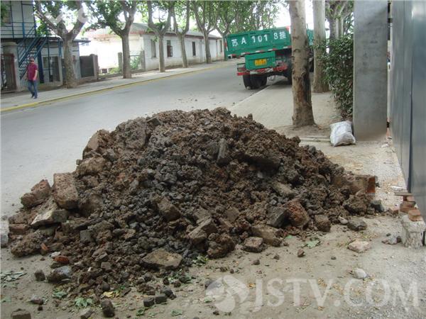 在现场看到。这堆渣土位于回龙桥一停车场处,近一米多高,像座小山一样占据了半幅路面。一位看大门师傅说,早上7点多他刚出门,就发现大门口的这堆渣土垃圾,如此偷倒渣土,行人车辆进出都难,真够缺德的。
