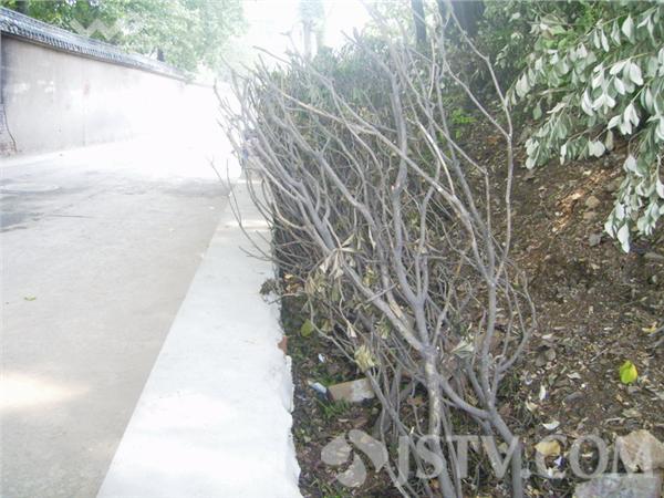 据附近居民说,枯死的灌木新栽过来不过10天,但基本都已枯死。只有新栽当天浇过一次水,至今还未见有人来浇过水。天气这么热,哪有不死的?据称,这些移栽过来的大片灌木主要是美化路边市容的,现在全部枯死,倒成丑化市容了。现场初步估计,这些新栽不久的灌木至少数百棵。
