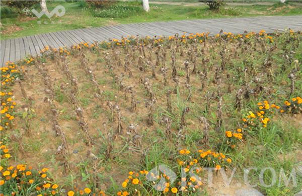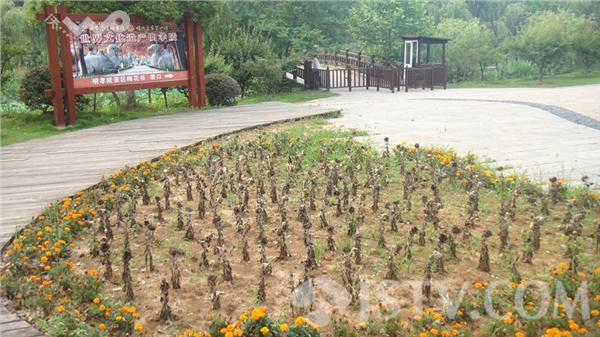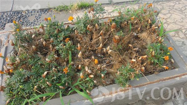 昨天下午,南京网友钱江潮陪同北京来的媒体朋友去明孝陵景区游览,刚到梅花谷入口处便看到门前广场上大片花草枯死。再仔细看不仅门前水泥花坛上的一排鲜花也大多枯萎,花坛墩子钢筋裸露多有破裂;售票处旁的草地上,还横七竖八地丢弃着众着扫把和簸箕。见到这些脏乱差现象,快人快语的北京客人多有微词,他们你一言我一语地说:明孝陵是闻名遐迩的AAAAA旅游景区,票价高达70元/人,没想到大门口的景观却是如此的糟糕,明孝陵太不注重景区形象了吧?!