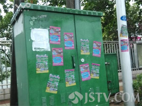 6月16日下午14时,淮安市民刘先生爆料称,一夜之间淮安市区人民北路上被张贴了许多儿童舞蹈培训小广告,许多角落和公共设施上都被贴满了广告,就连垃圾箱都没放过。