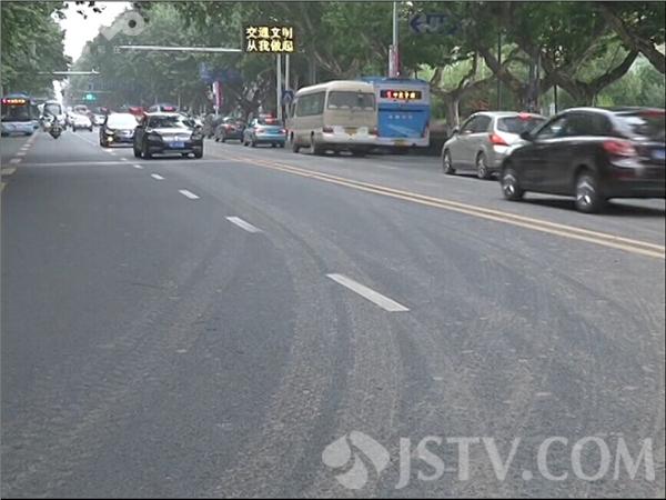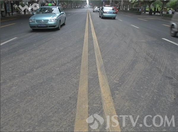 但是我们还注意到呢,有一些车轮印出现在中山路从南向北的这条道上,也就是说昨晚在运输渣土中出现了逆向行驶的行为。