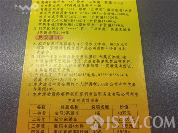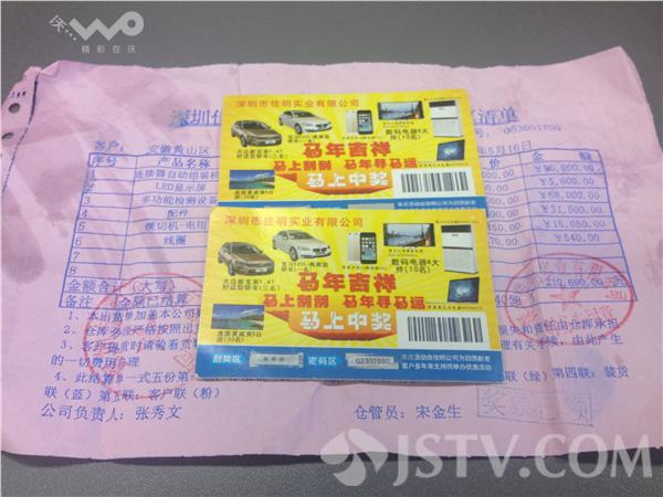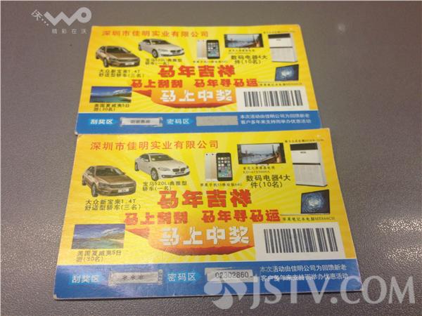 他在路边等了半天没见失主来认领,他便研究起了那几张刮刮卡。上面写着,这是佳明公司为了回馈新老客户办的抽奖活动,奖品分四个级别,最高奖值43万元。肖先生刮开了四张奖券,其中一张居然中了三等奖,价值6.5万元的数码电器4大件。他随后拨打电话,对方表示,这肯定是他们南京的哪个客户丢了单据,不过既然肖先生捡到了,那么奖品奖金就可以由他来领。不过,领奖前得先交10%的个人所得税。